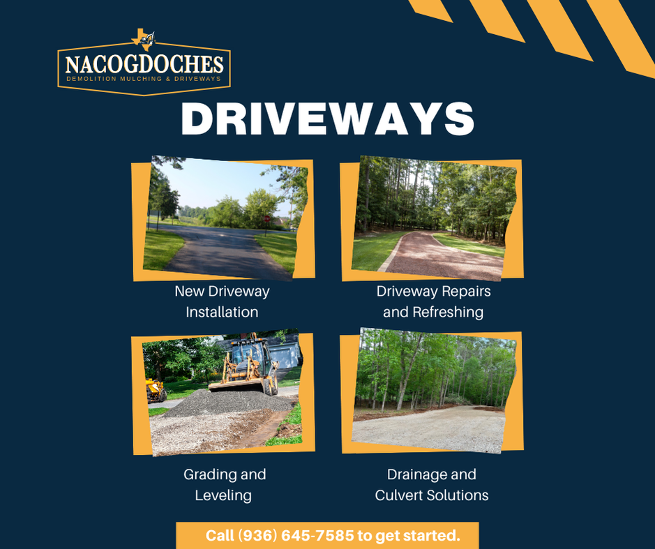 If you have land that needs work, we have the equipment, experience, and crew to get it done right. We specialize in land clearing, forestry mulching, demolition, dirt work, driveway construction, and access road installation across East Texas and surrounding areas. Whether you’re preparing a homesite, reclaiming overgrown property, improving access, or developing land for construction, NACDMD delivers efficient, professional results you can count on.